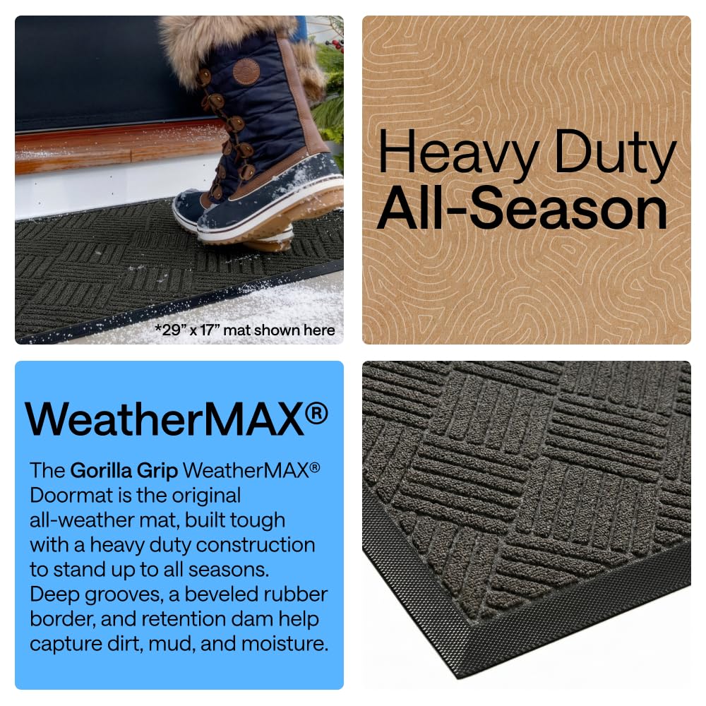 - THE ORIGINAL WEATHERMAX ALL SEASON DOORMAT: Gorilla Grip's Original WeatherMax doormat is built tough with a heavy duty, yet soft and flexible construction; deep grooves, beveled rubber border and retention dam help capture dirt, debris and moisture