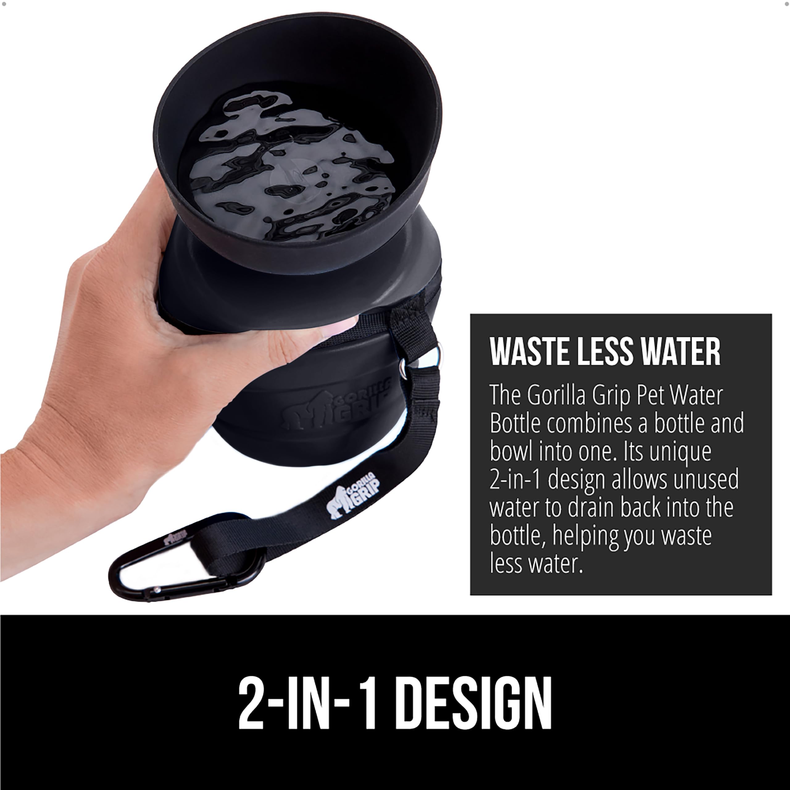 GORILLA GRIP Dog Water Bottle, Portable Water Bowl Dispenser for Dogs, 12 oz Leak Proof Pet Travel Squeeze Bottles Food Grade Silicone, Pet Stocking to Go Puppy Essentials, Black